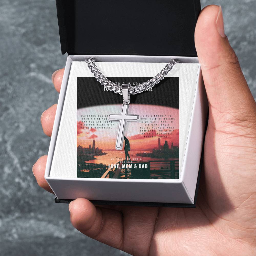 Wear your faith proudly with this Cuban Chain with Artisan Cross Necklace. Perfect for special occasions or everyday wear, this makes a wonderful gift idea for you or your loved one. It will surely be treasured for years to come!